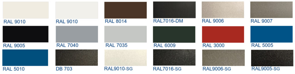 Garážová vrata se vyrábí v sedmi základních barvách a v pěti dekorech imitace dřeva. Dále si můžete vrata objednat v jakékoliv barvě dle stupnice RAL. Díky různým typům povrchů, designů a barev můžete najít výsledný produkt, který bude naprosto originální, protože si ho prakticky od základu vytvoříte sami.